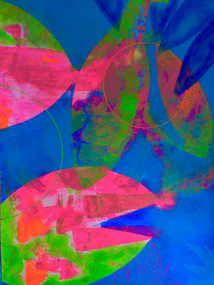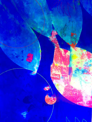 enormer Ausdruckskraft und Präzision. Es sind keine digitalen Projektionen, sondern Acryl-Bilder, die aus sich selbst heraus strahlen. Die Künstlerin transferiert digitale Bildwelten zurück ins